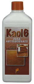 Trattamento composto da idroemulsione di cere dure e resine ad elevata resistenza per la finitura e la protezione superficiale di materiali lapidei naturale ed artificiali.Ravviva il naturale colore, protegge dalla smog,dalla polvere e dalle macchie.KAOL 6 ha una buona capacità protettiva contro una varietà di macchie di natura grassa(oli e grassi vegetali- animali), acida (limone, aceto, coca cola, ecc.)alcolica(vino, inchiostri,pennarelli).Garantisce un elevata protezione antiusura,ottima trasparenza,elasticità e azione antisdruciolo.Essendo autolivellante garantisce un assorbimento uniforme.Consente al materiale trattato di mantenere una buona traspirazione.