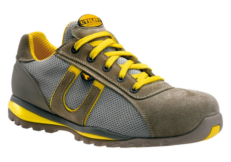 EVAcon film in PU. Battistrada in gomma nitrilica bicolore. EN ISO 20345: 2007 Descrizione Calzatura bassa in tessuto rete e vitello scamosciato, puntale in alluminio 10, 200 joule. Fodera Air Mesh, K-Sole passaggio zero, plantare in EVA forata.